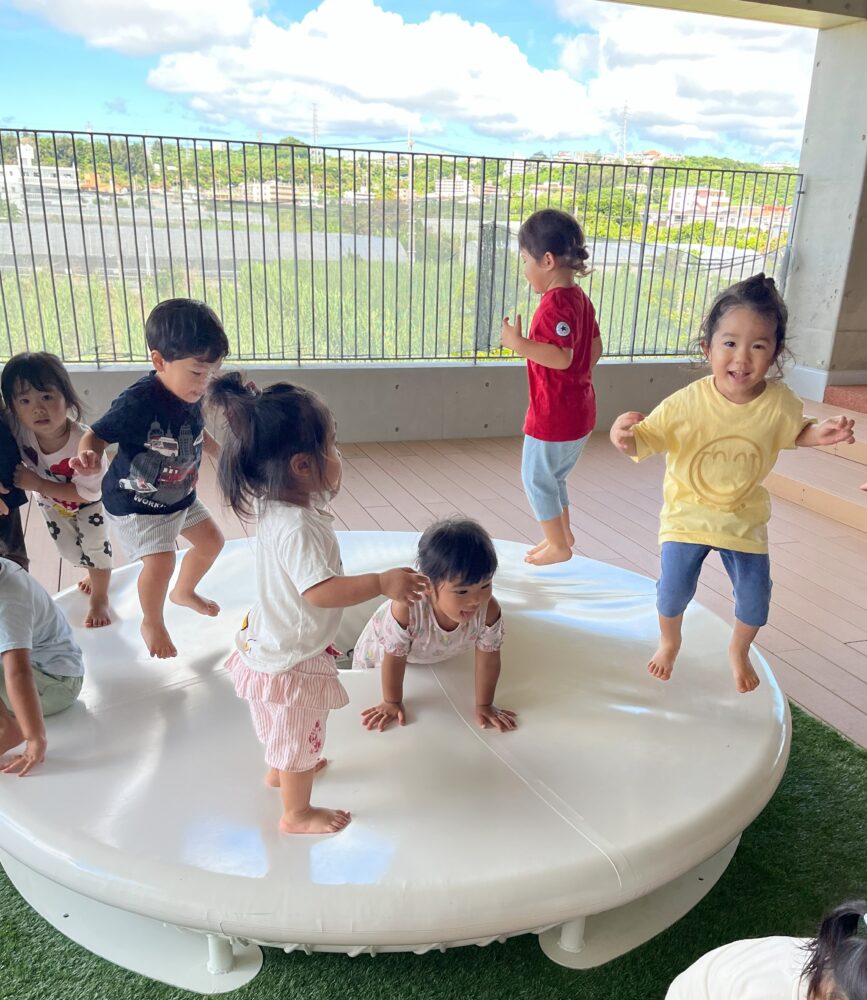 早速2歳児クラスの子ども達がジャンプしたり、体に感じる振動を楽しんだりしていましたよ!![]()