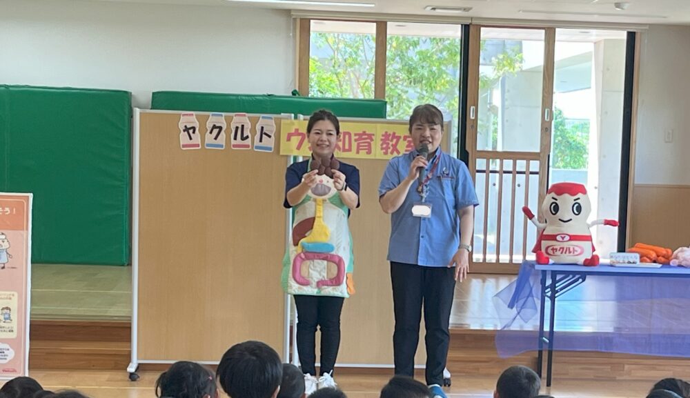 沖縄ヤクルトさんによる、『ウン知育教室』にきりん組さん、ぱんだ組さん、ぞう組さんが参加しました。 健康のバロメーター、“うんち”について楽しく学び、腸トレ体操にもチャレンジしましたよー 興味津々の子ども達でした。お話聞いてみてくださいね 卒園児が帰ってきた!(^^)! season2 R7年秋の全国交通安全運動うるま地区出発式!(^^)! 関連記事一覧 夏だ!!! (*^^*) 2024高江洲市場♥オープン!(^^)! 梅雨の晴れ間に…🌞 1階床のコンクリート打設が終了しました