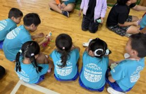 高江洲小学校2年生との交流会にぞう組さんが参加しました。様々な手作りおもちゃコーナーで、時間が経つのも忘れて遊びました。お兄さん、お姉さんに優しく話しかけられ、緊張がほぐれていたぞう組さんです 小学校への入学がますます楽しみになっているようですよ ゴーディーちゃんがやってきた!(^^)! 芋ほり体験&琉球村!(^^)! 関連記事一覧 入園式♪ ウン知育教室!(^^)! 第3回入園式🌷 1学期・終業式