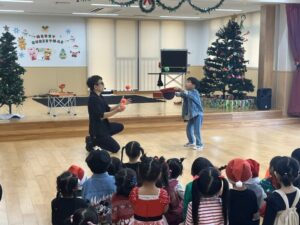 一足早く、クリスマス会を行いました。それぞれおしゃれをして、登園時から嬉しさいっぱいの子ども達でした。ゲストの『たまんちゅさん』のパフォーマンスでは、子ども達だけでなく大人も目をキラキラ輝かせていましたよ 第3回★お遊戯会 関連記事一覧 Bブロック!(^^)! 第1回運動会(3~5歳児)✨ 第3回発表会!(^^)! 高江洲こども園新築工事入札を行いました
