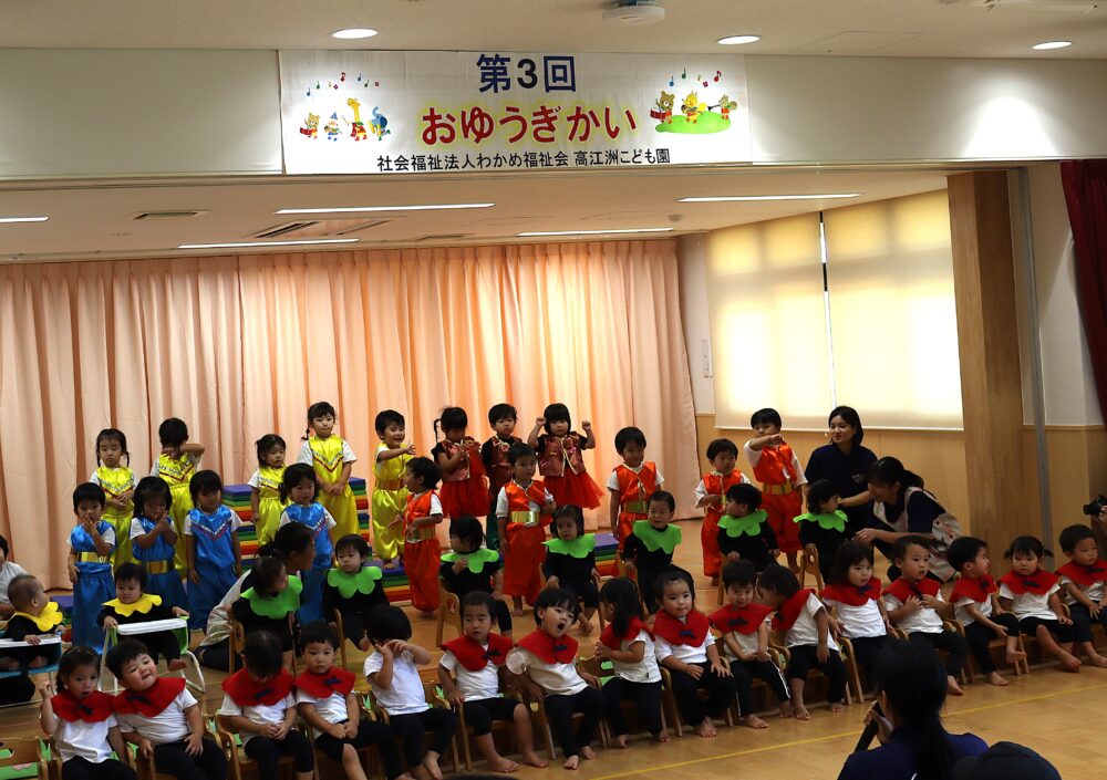 0~2歳児クラスのお遊戯会が行われました。いつもと違った雰囲気を感じ取って、日頃とは違った姿を見せていた子ども達ですが、最後までステージ上でそれぞれに楽しんでいる様子が見られました可愛らしい未満児クラスの子ども達みんなに拍手 芋ほり体験&琉球村!(^^)! 2025★クリスマス会🎄 関連記事一覧 ゴーディーちゃんがやってきた!(^^)! ありがとうございました(#^^#) ✿第2回入園式✿ わかめ福祉会合同職員研修会