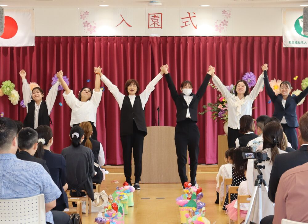 高江洲こども園では、ひとあし早く令和8年度入園式を行いました。